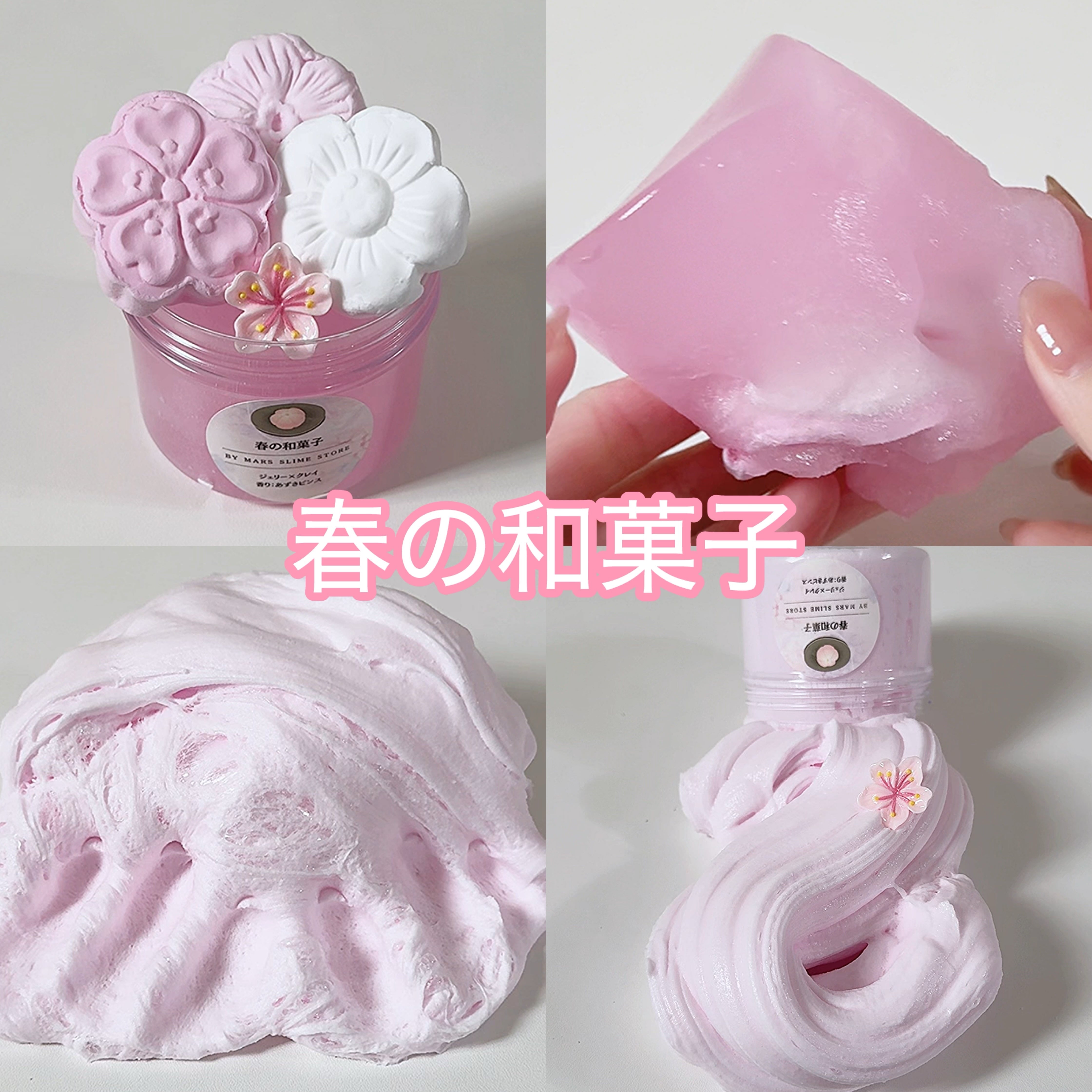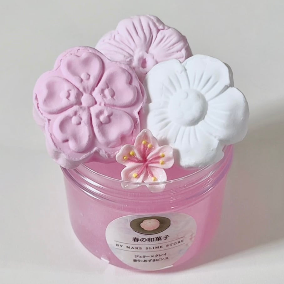 美しい桜色のジェリースライムをベースに、和菓子のような桜のクレイをトッピング❀.*゚